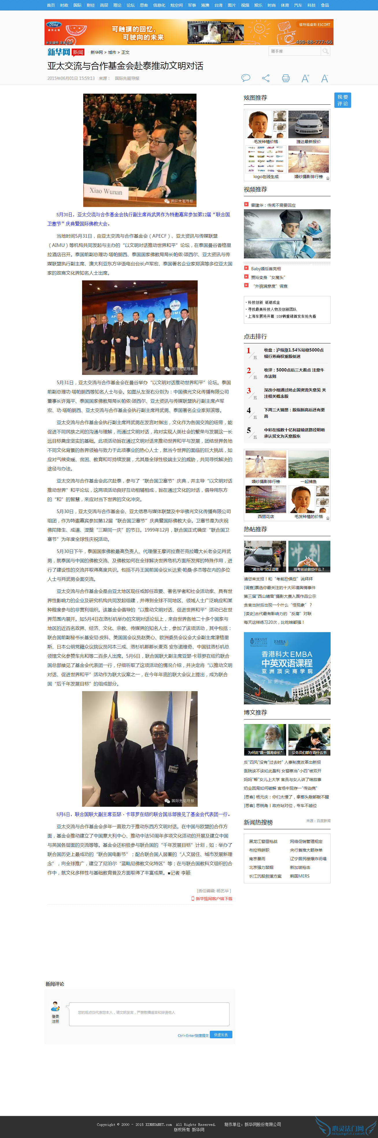亚太交流与合作基金会赴泰推动文明对话 2015年06月01日